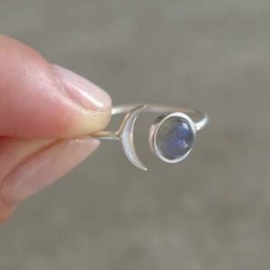 Bague plume en argent avec pierre en quartz fumé – FEATHER